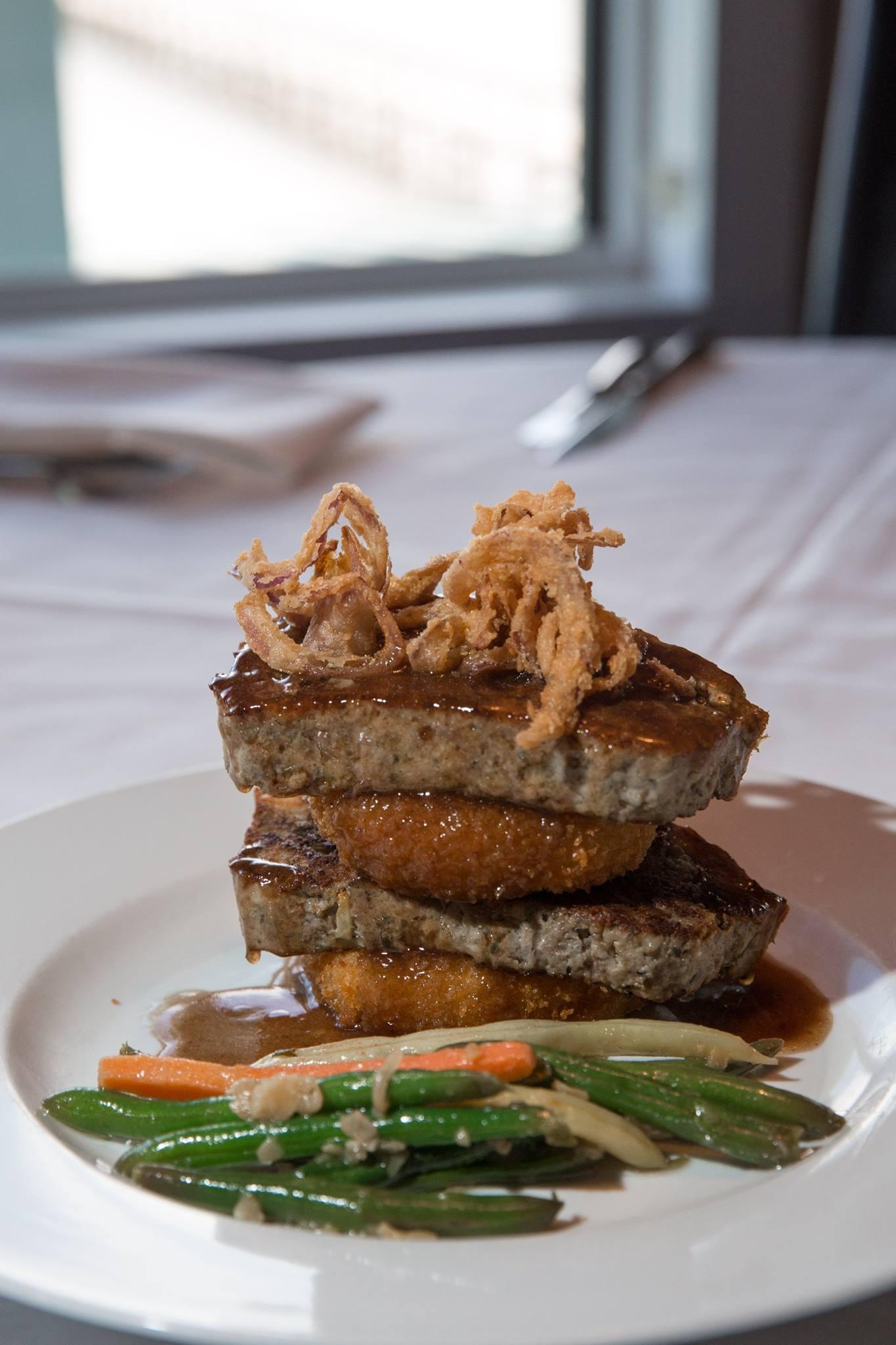 Topped with crispy onions & Bordeaux demi-glace. Served with mashed potato & fresh vegetable.