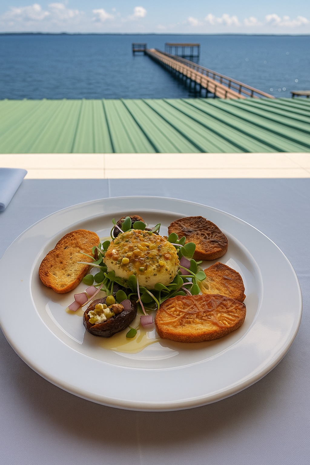 Enjoy our baked goat cheese medallion, encrusted with fresh herbs and toasted panko, topped with crushed pistachios, and finished with a delicate drizzle of locally sourced honey. Resting over a bed of microgreens. Served alongside crisp, golden crostinis, this dish is as beautiful as it is flavorful.